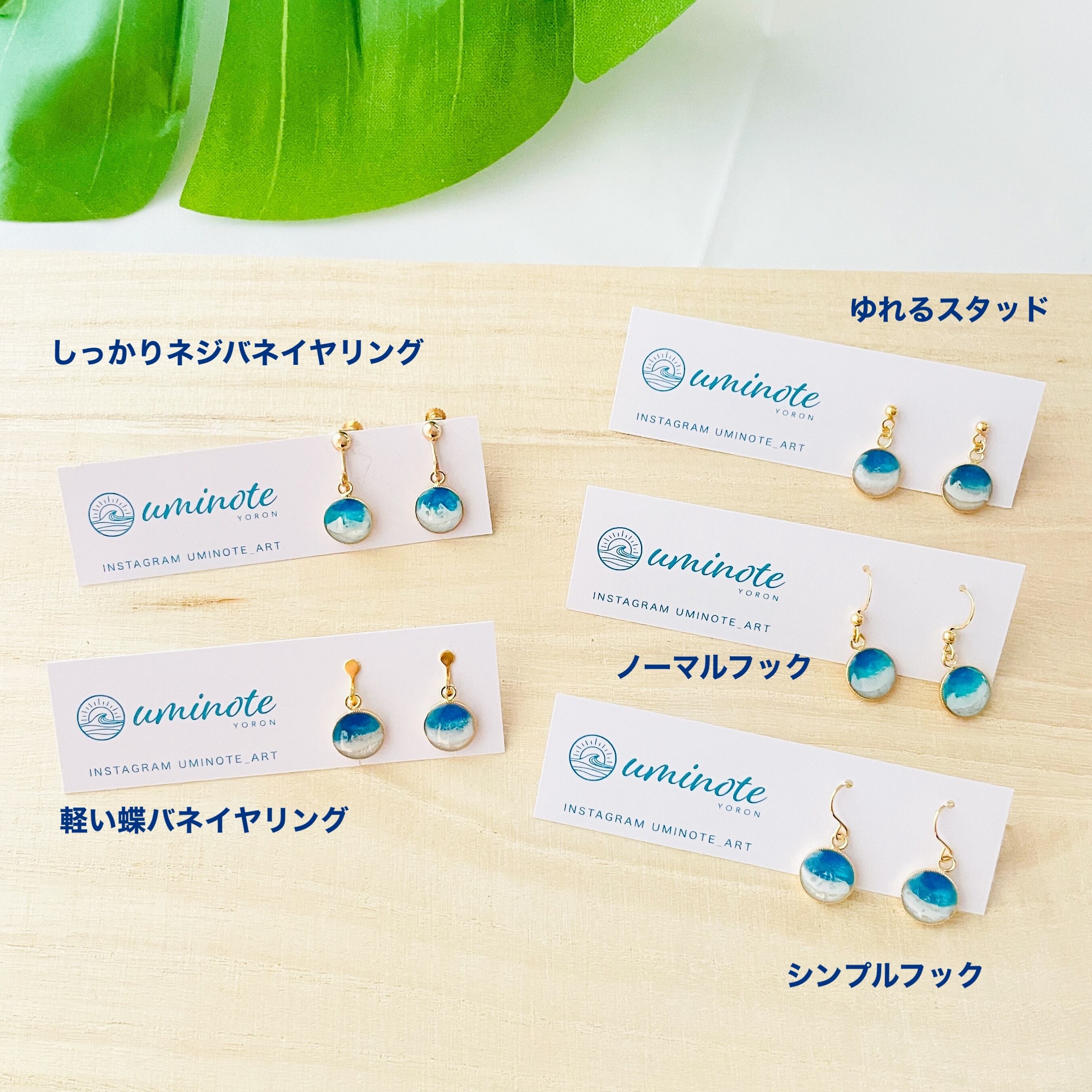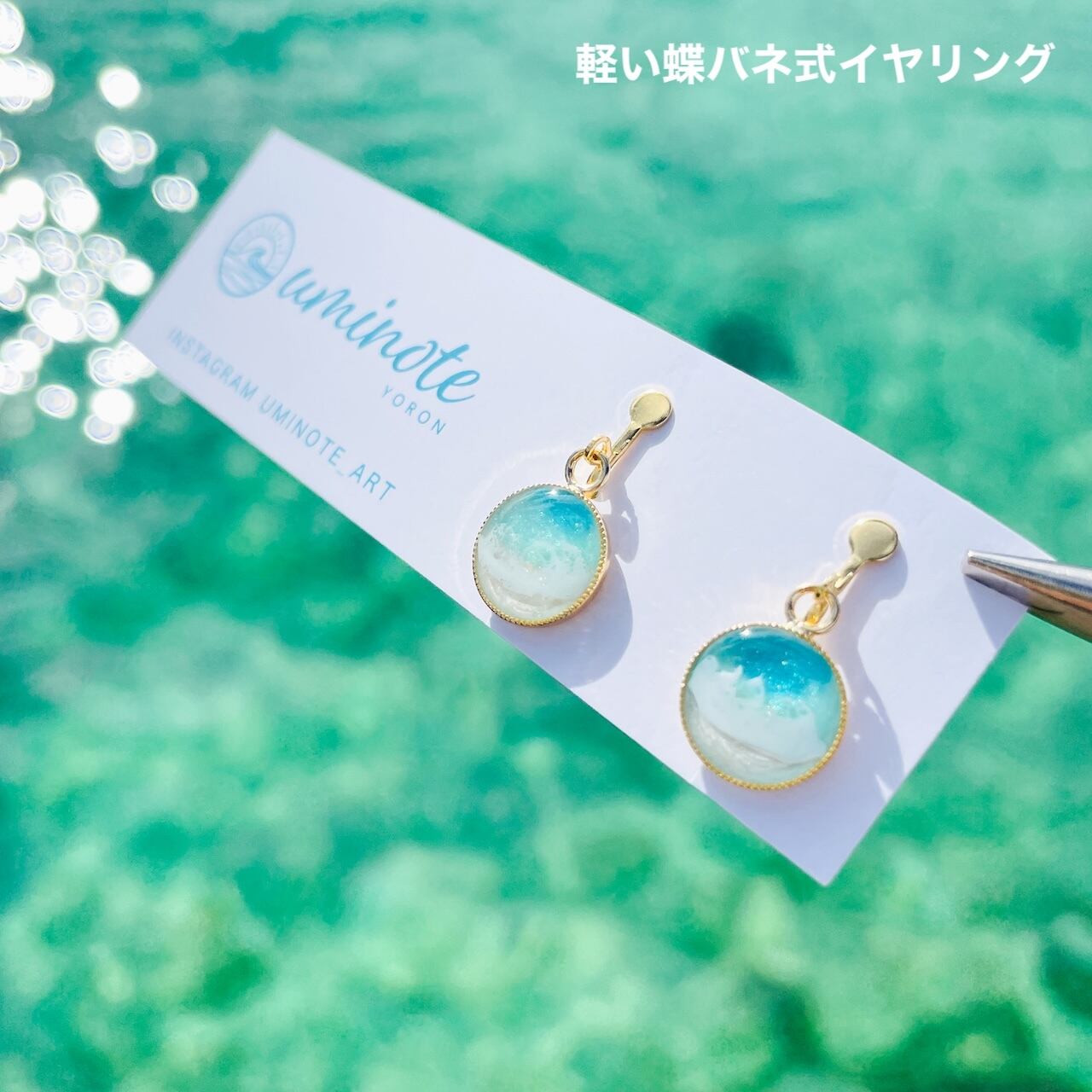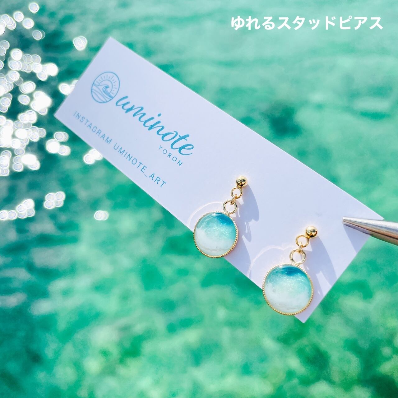 《Beach Collection》オーシャンアートピアス / イヤリング 【ヨロンブルー × ゴールドカラー】 金具交換可能 金属アレルギー対応 レジン 海 青 波 砂浜 ビーチ おしゃれ かわいい