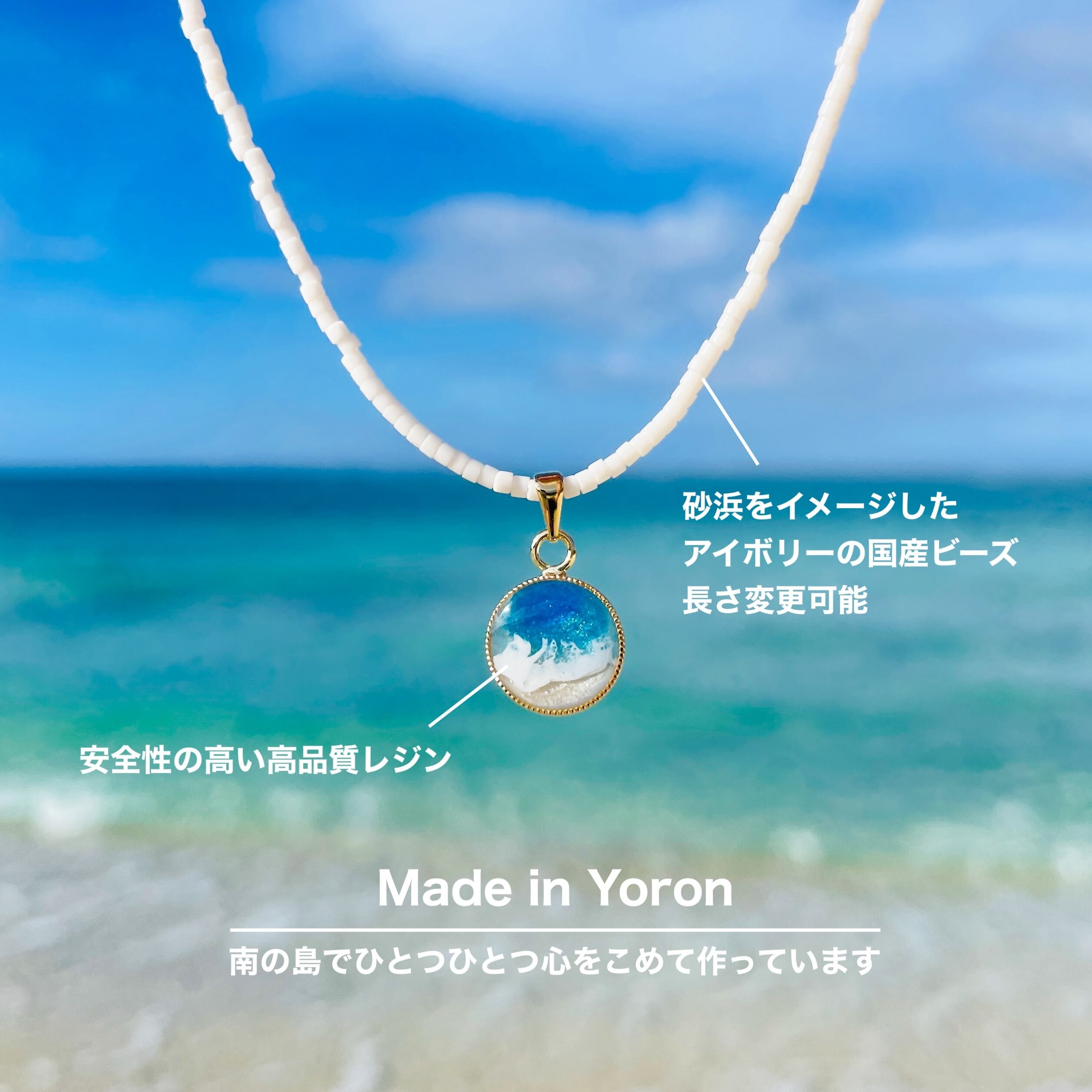 《Beach Collection》オーシャンアートネックレス 【オーシャンブルー × ホワイトビーズ】 長さ40cm+アジャスター5cm レジン 海 青 波 砂浜 ビーチ おしゃれ かわいい | uminote公式通販 BASE店