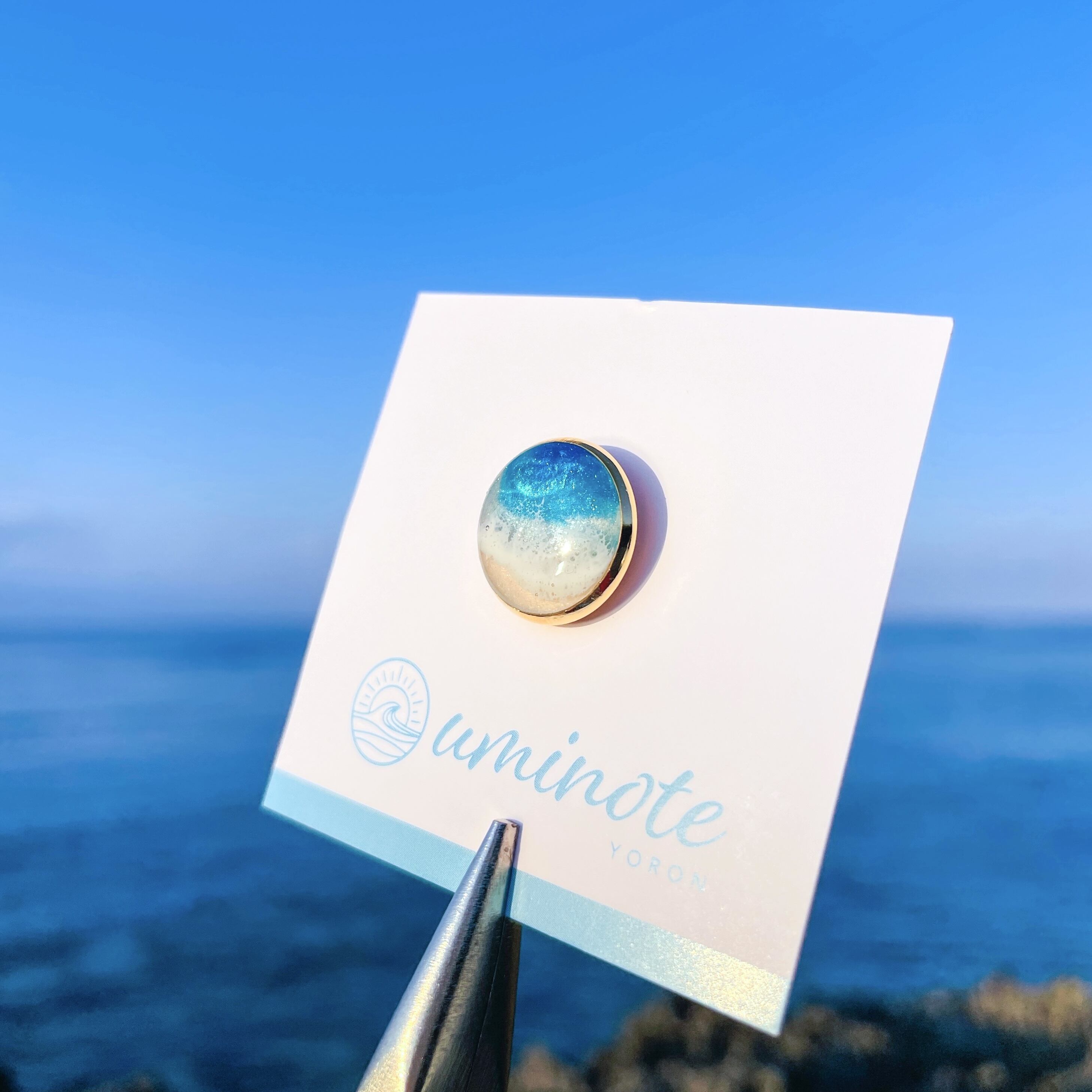 《Beach Collection》オーシャンアートピンバッジ 【オーシャンブルー × ゴールドカラー】 直径約14mm