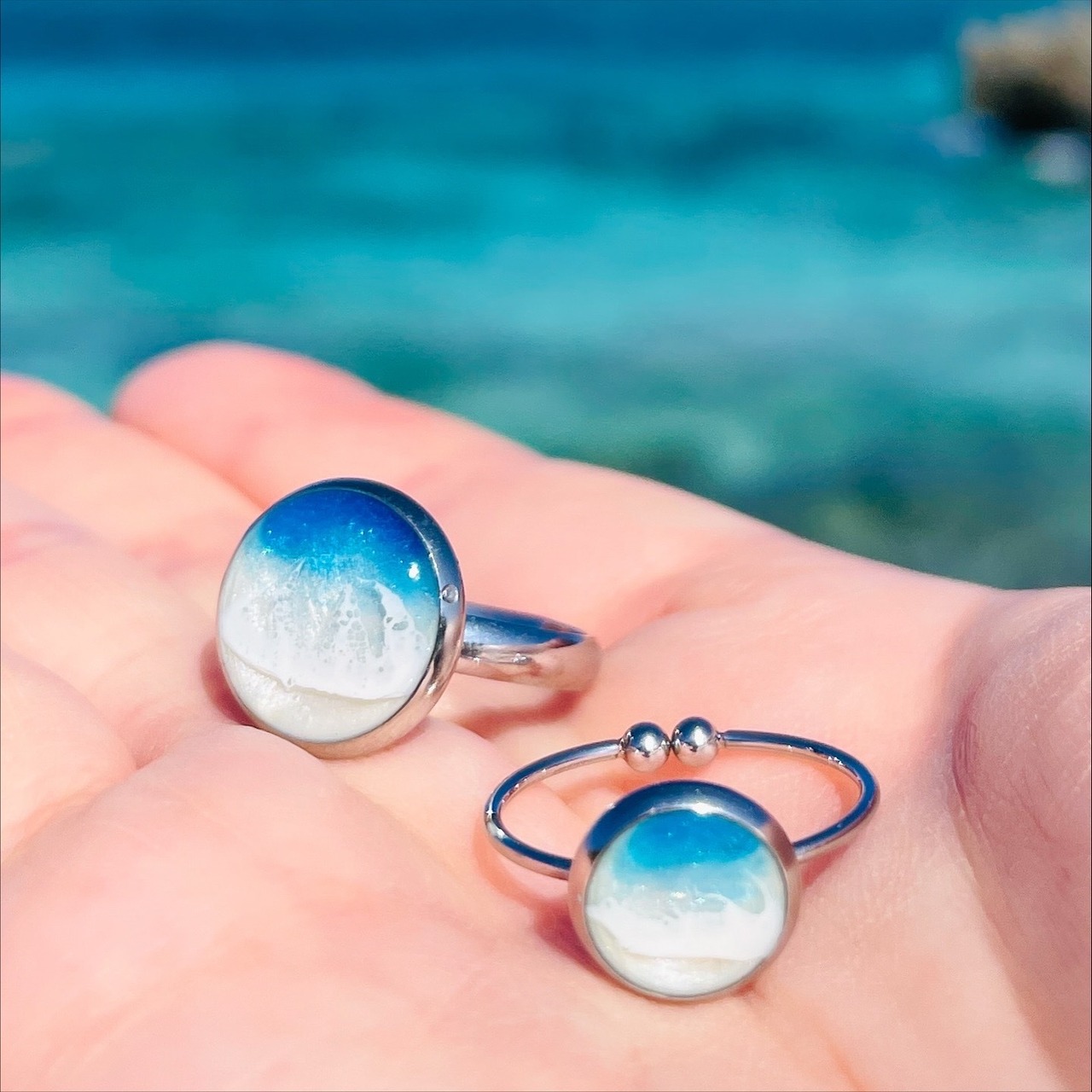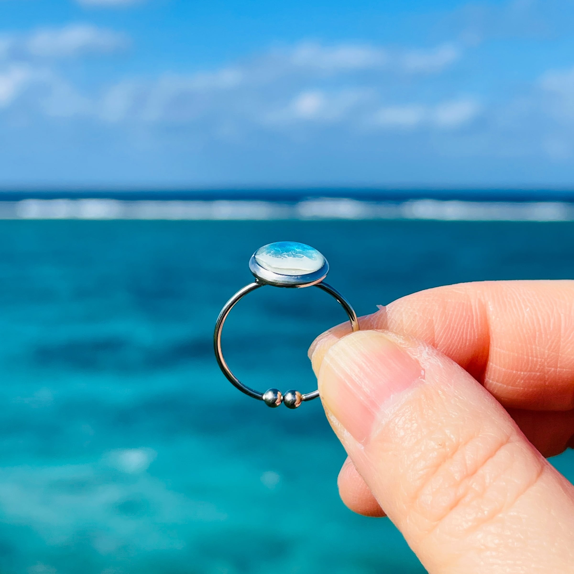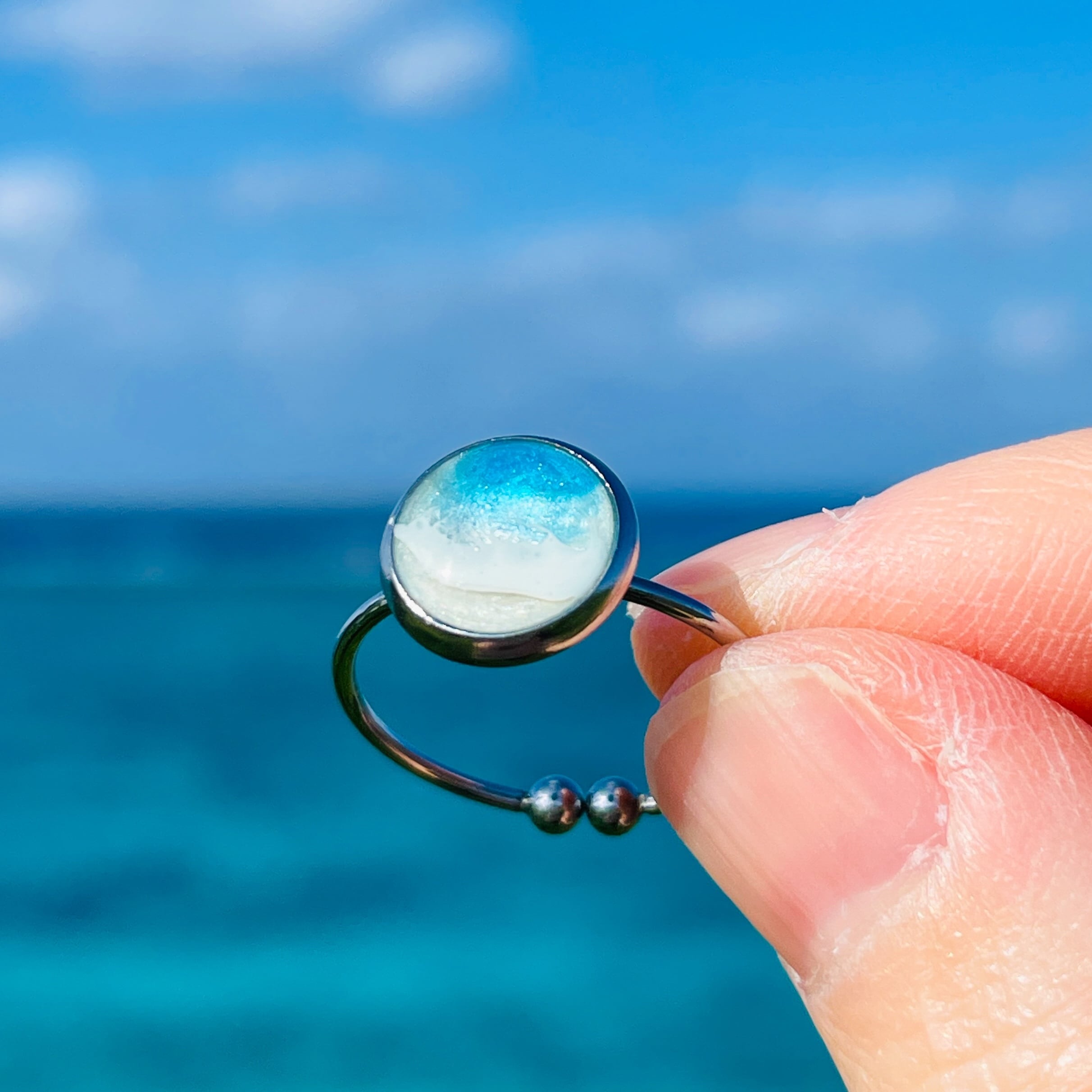 南の島の輝く海の情景をちいさなアクセサリーにしました。