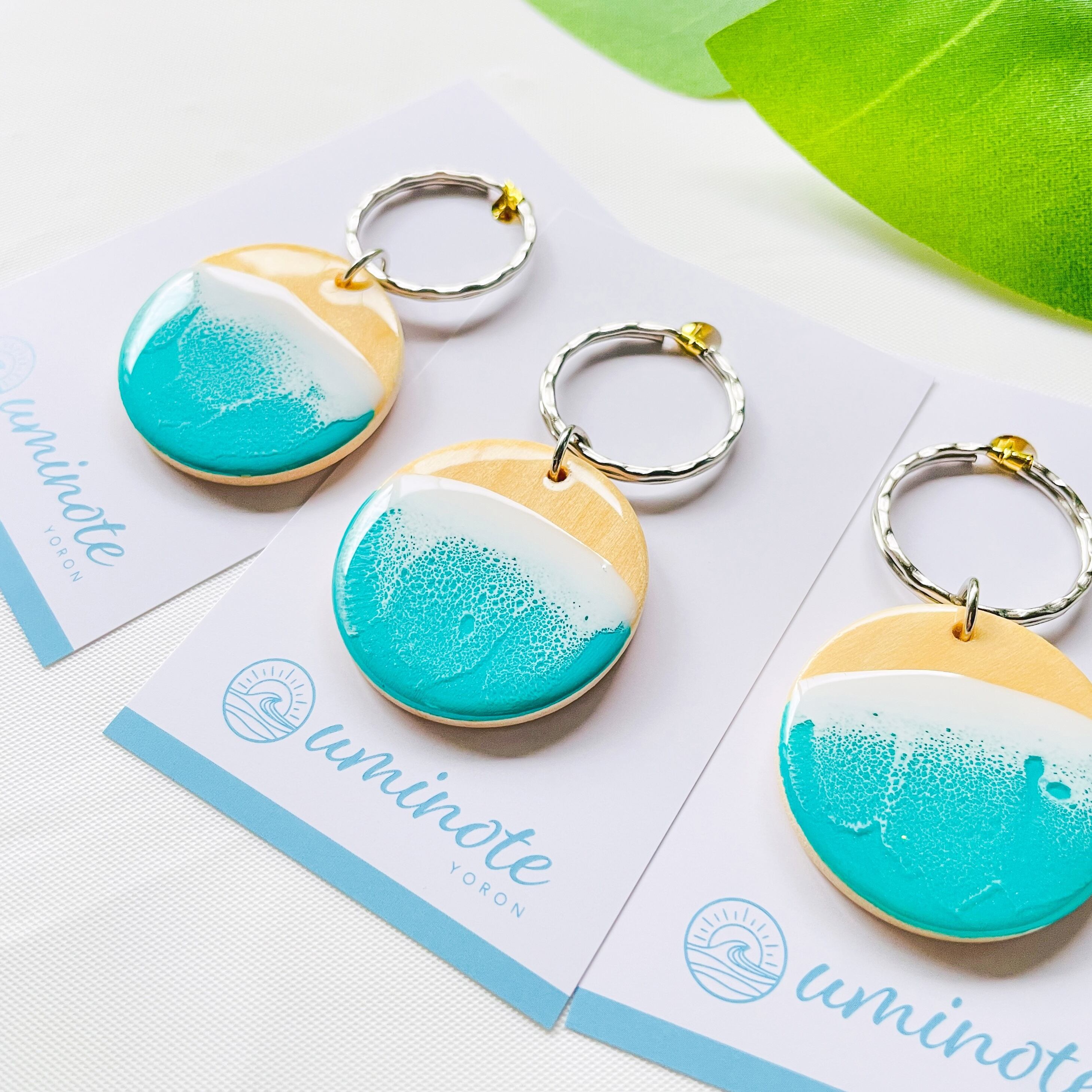 ♡2025年 人気No. 1♡《オーシャンアートキーホルダー(1個)》 ヨロンブルー レジンアート キーチェーン キーリング エポキシ樹脂 おしゃれ 波 ビーチ 砂浜 青 ブルー | uminote公式通販 BASE店