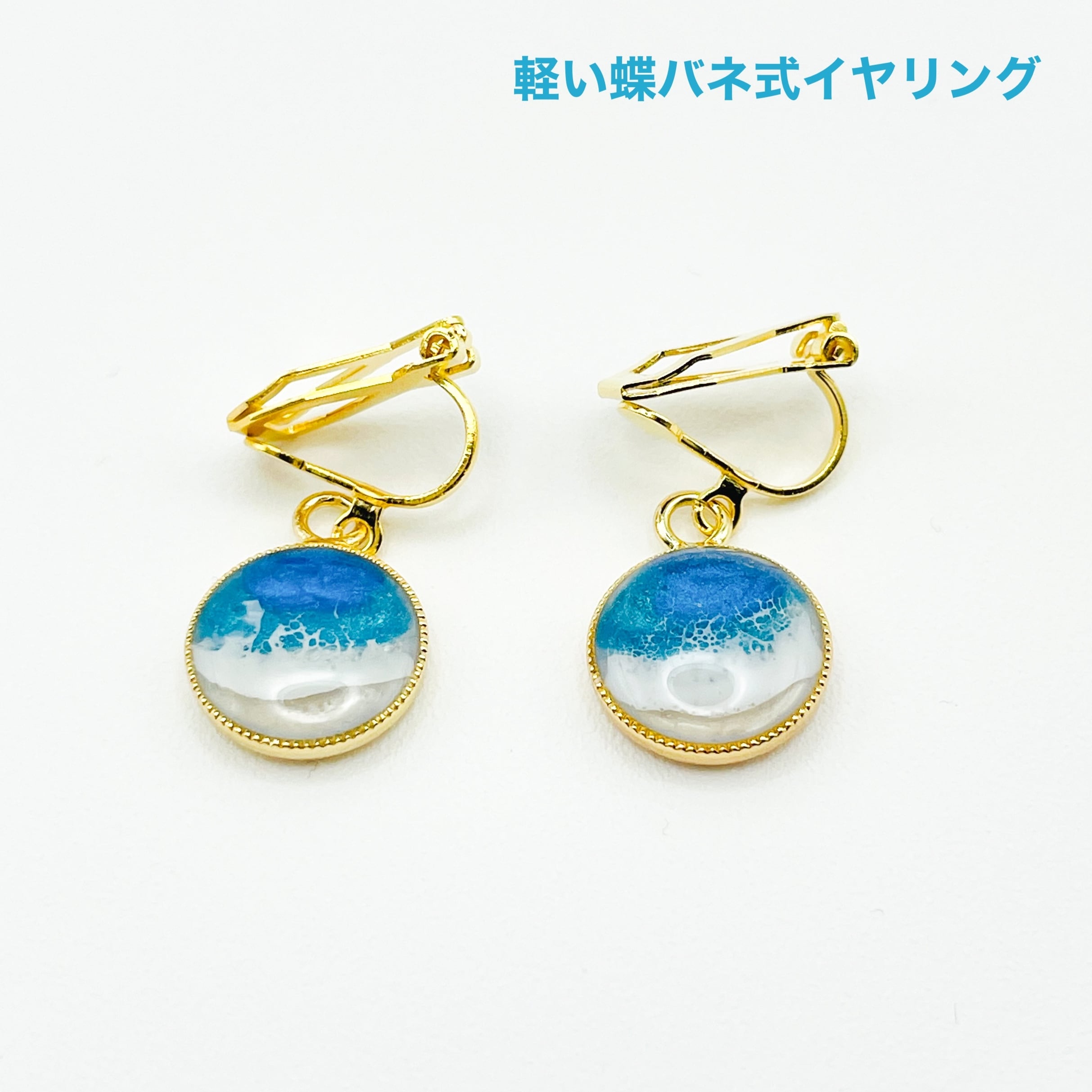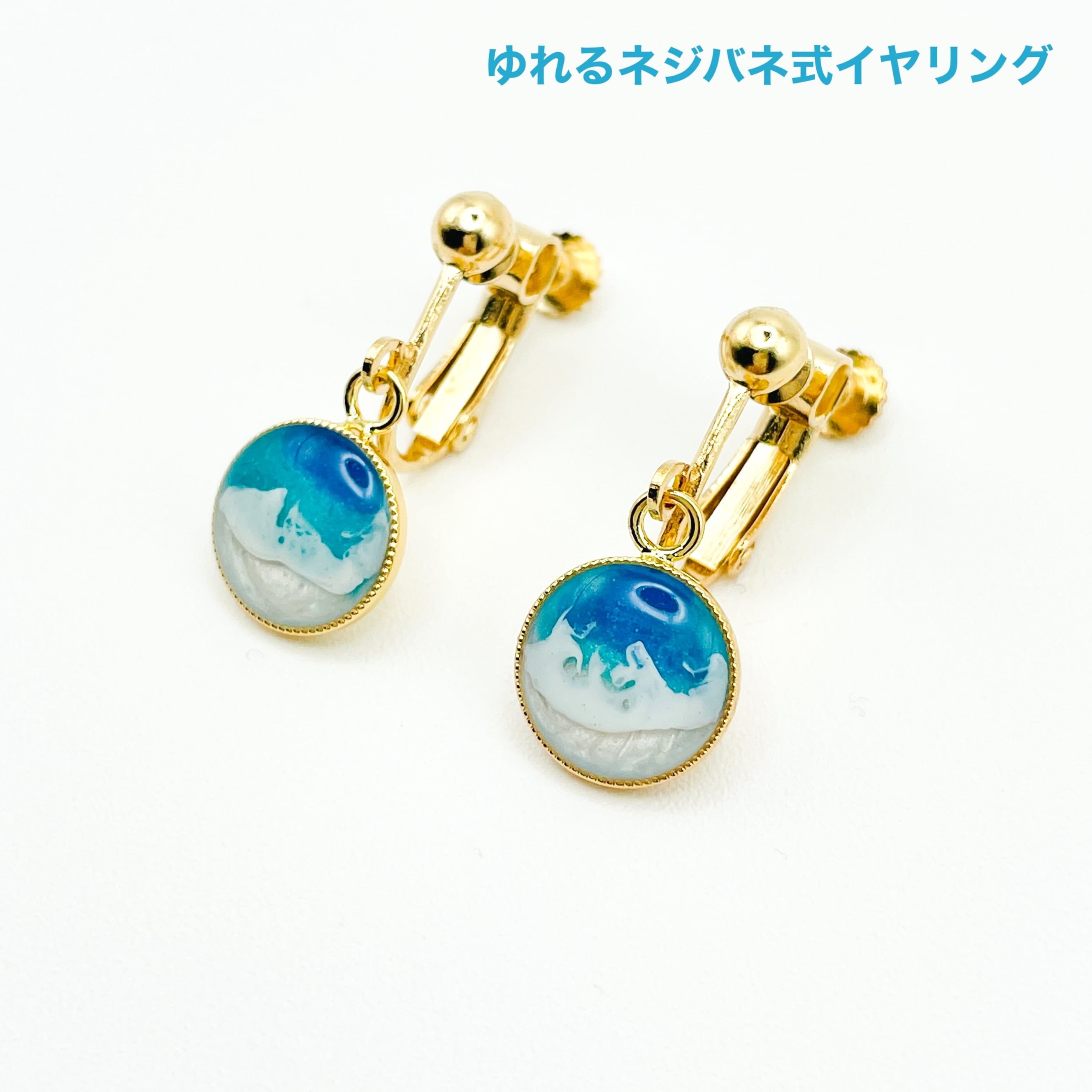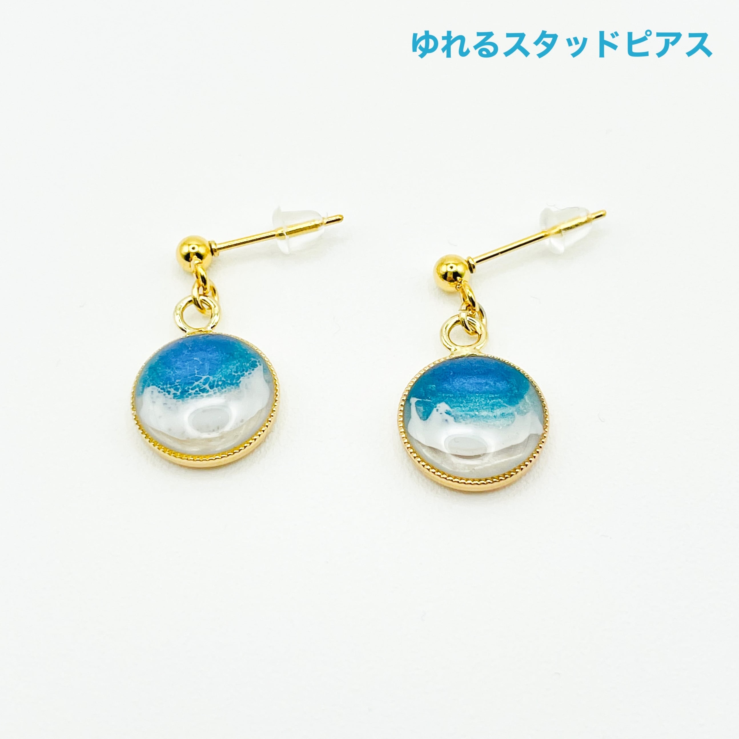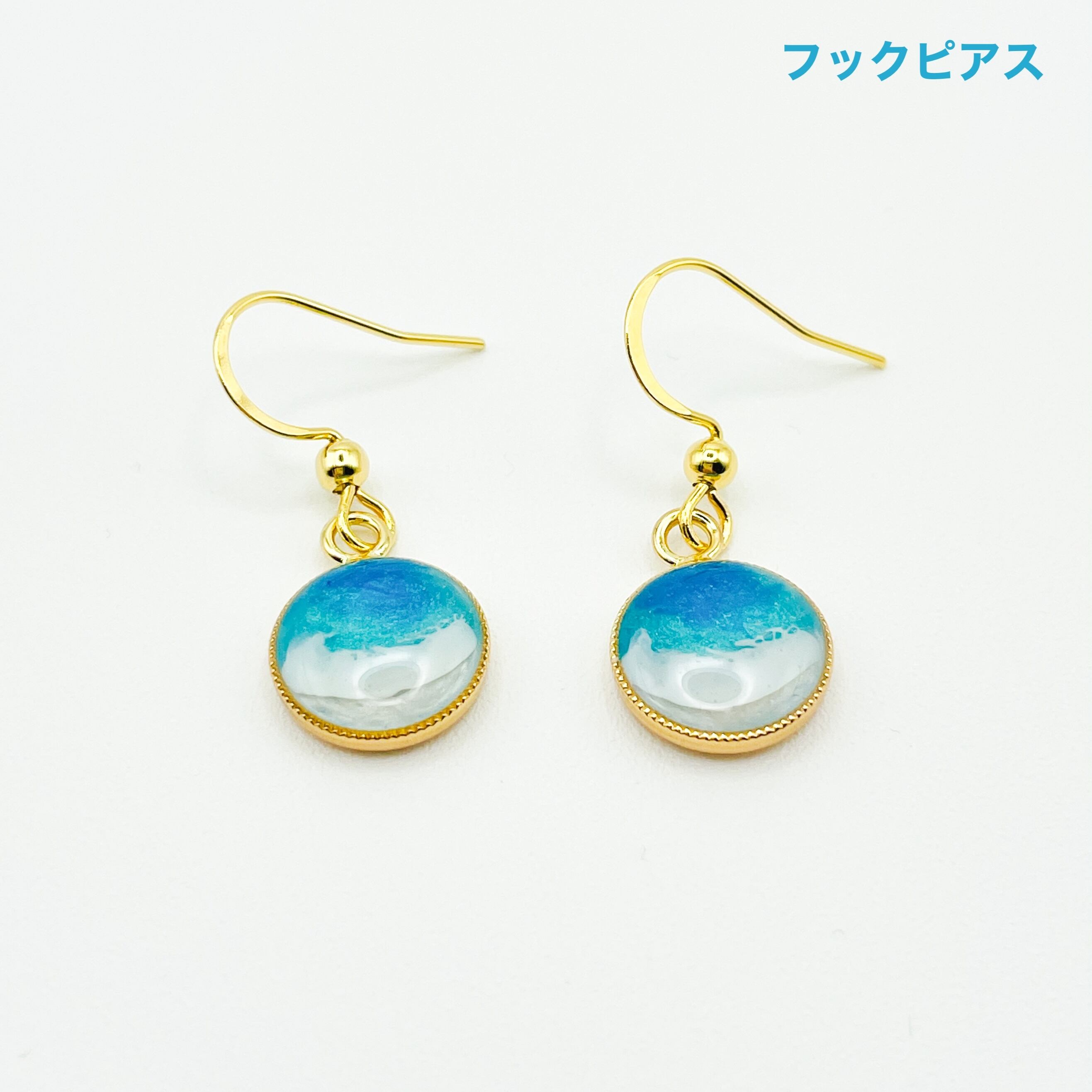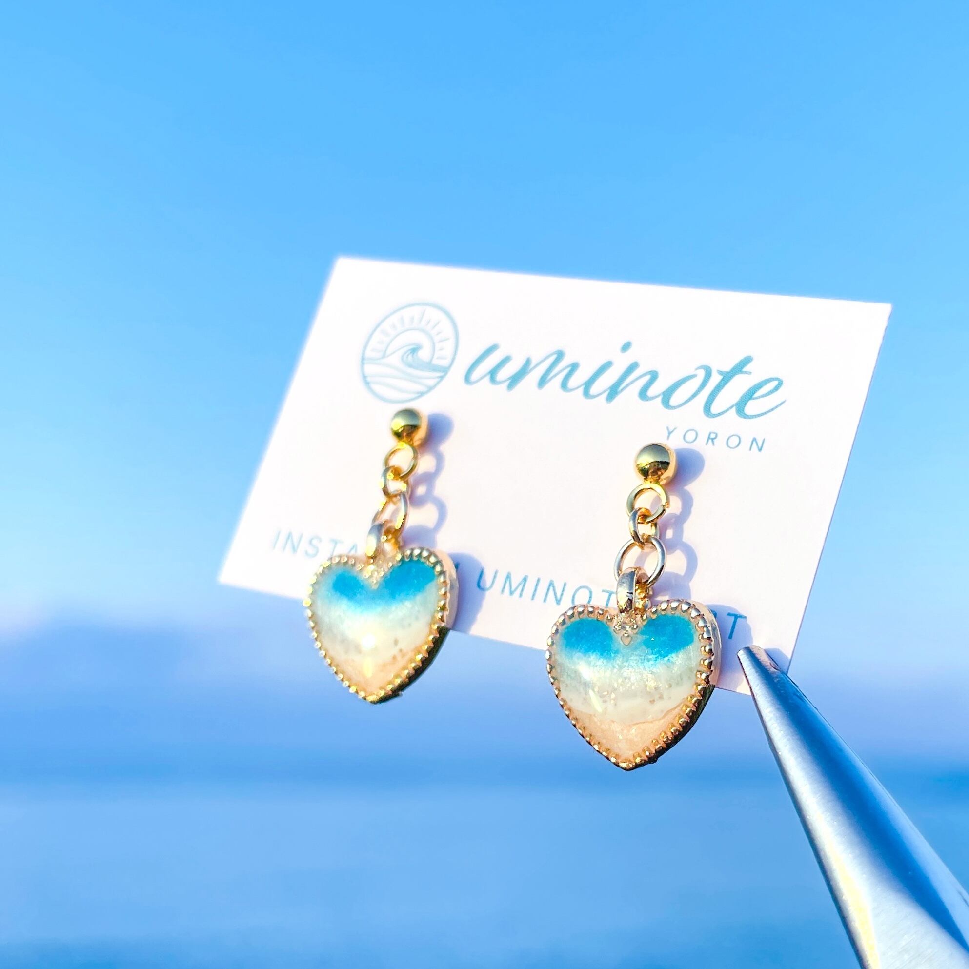 ハートのオーシャンアートピアス / イヤリング 【オーシャンブルー × ゴールドカラー】 金具交換可能 金属アレルギー対応 レジン 海 青 波 砂浜 ビーチ おしゃれ かわいい | uminote公式通販 BASE店