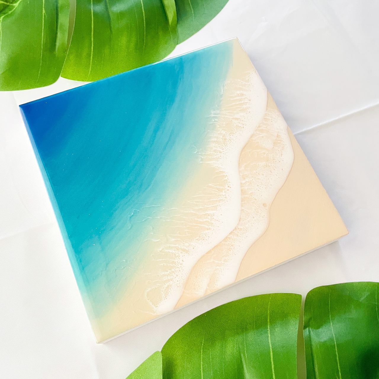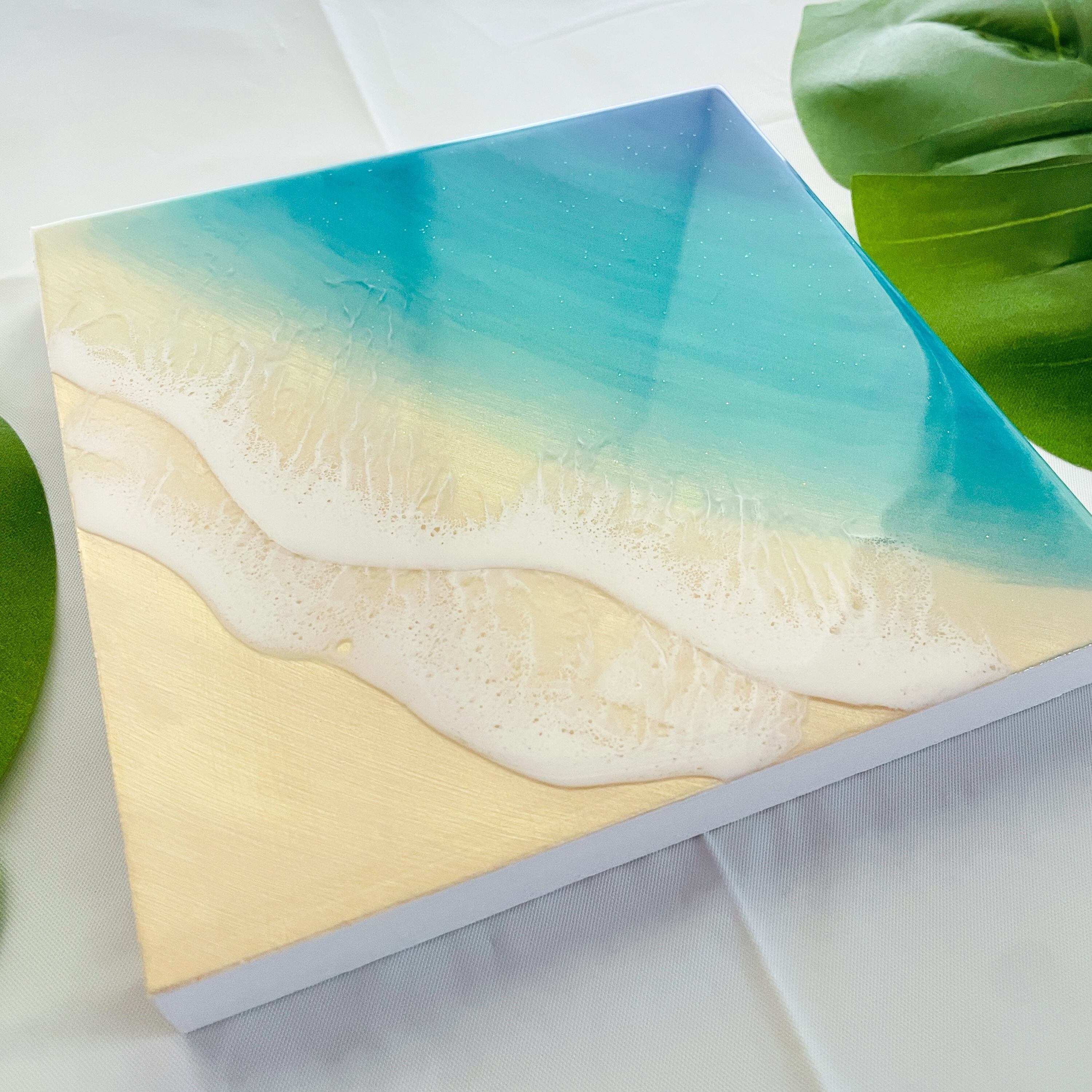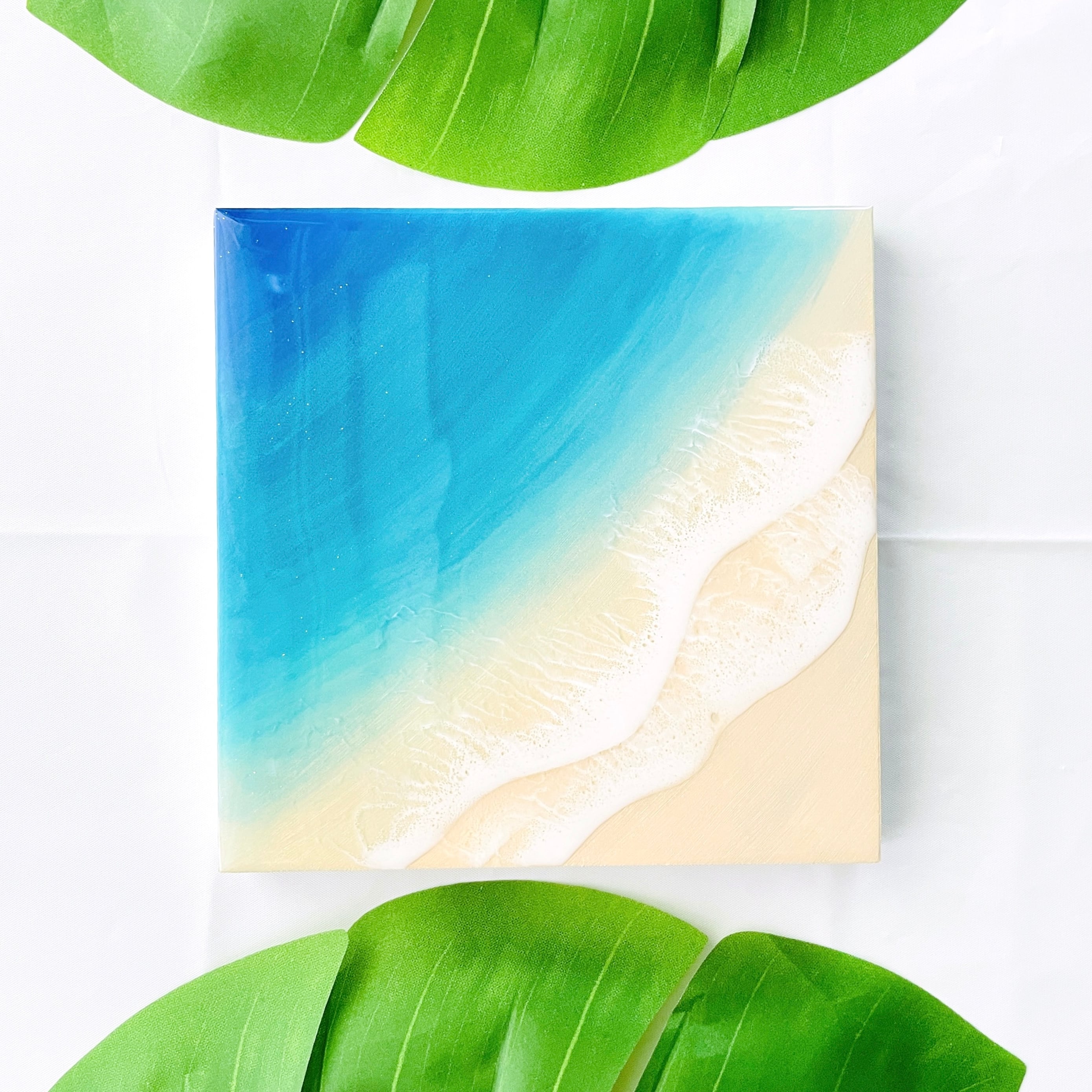 送料無料【一点限り】キラキラのラメ入り♡アートパネル オーシャンブルー (S0サイズ 18cm × 18cm)レジンアート エポキシ樹脂 インテリア おしゃれ 波 ビーチ 砂浜 青 ブルー グラデーション 誕生日 記念日 | uminote公式通販 BASE店
