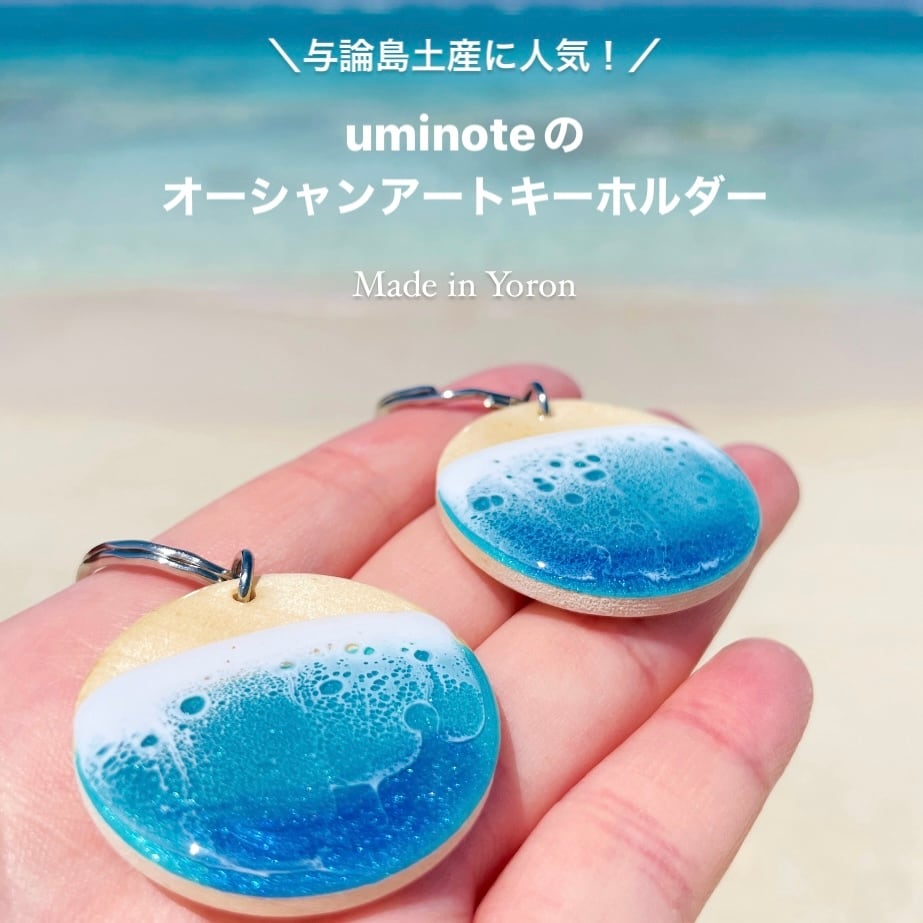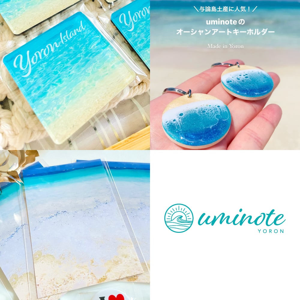uminote(ウミノオト)は、鹿児島県の離島のひとつ、奄美群島の与論島(よろんとう)でレジンアートとアクセサリーなどのおみやげ品を制作しているアートブランドです。